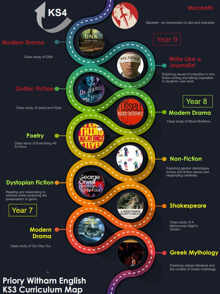 - Embed ambitious literary texts from the English canon and beyond(seminal world literature) which inspire and motivate students beyond their life experience.