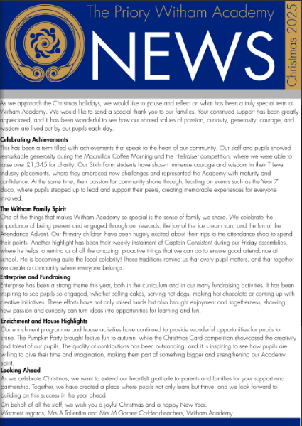 Keep up to date with All Witham Events on our facebook page: Priory Witham Academy